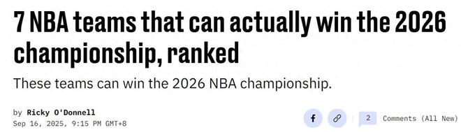 美媒公布新赛季7大争冠热门:火箭队飙升至第三 湖人勇士遗憾落选